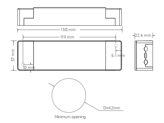 2. Utgangsterminalkabling: egnet for trådmåler 22awg-12awg (0,5 mm2 – 1,5 mm2), stripping krever 6-7 mm tinn