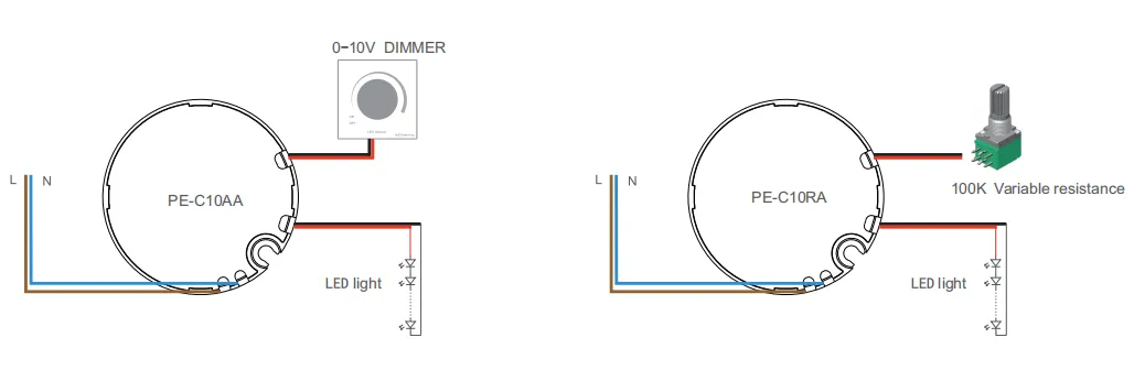 0-10V 1-10V 10vpwm signalgrensesnittstrøm < 0,1mA (100k potensiometer for pe-c10ra) |