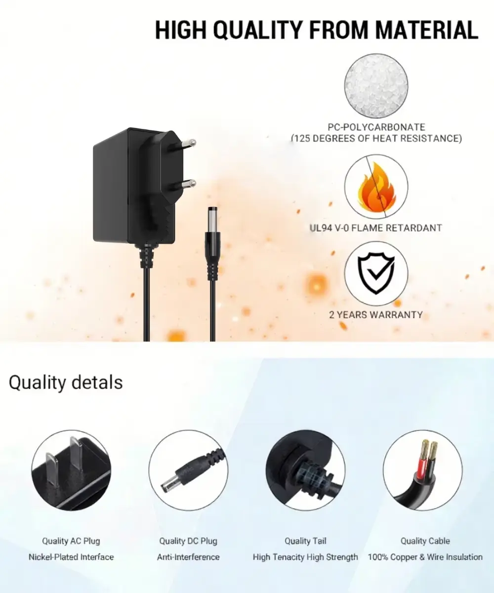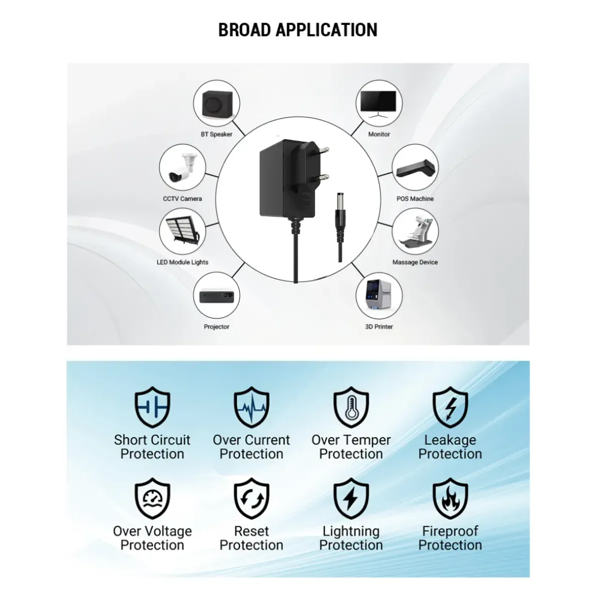 1. Omfattende sikkerhetsgaranti: Denne adapteren er utstyrt med flere beskyttelser, inkludert overstrøm-, overspennings-, kortslutnings- og overtemperaturbeskyttelse, og beskytter både seg selv og det tilkoblede utstyret ditt mot elektriske feil .