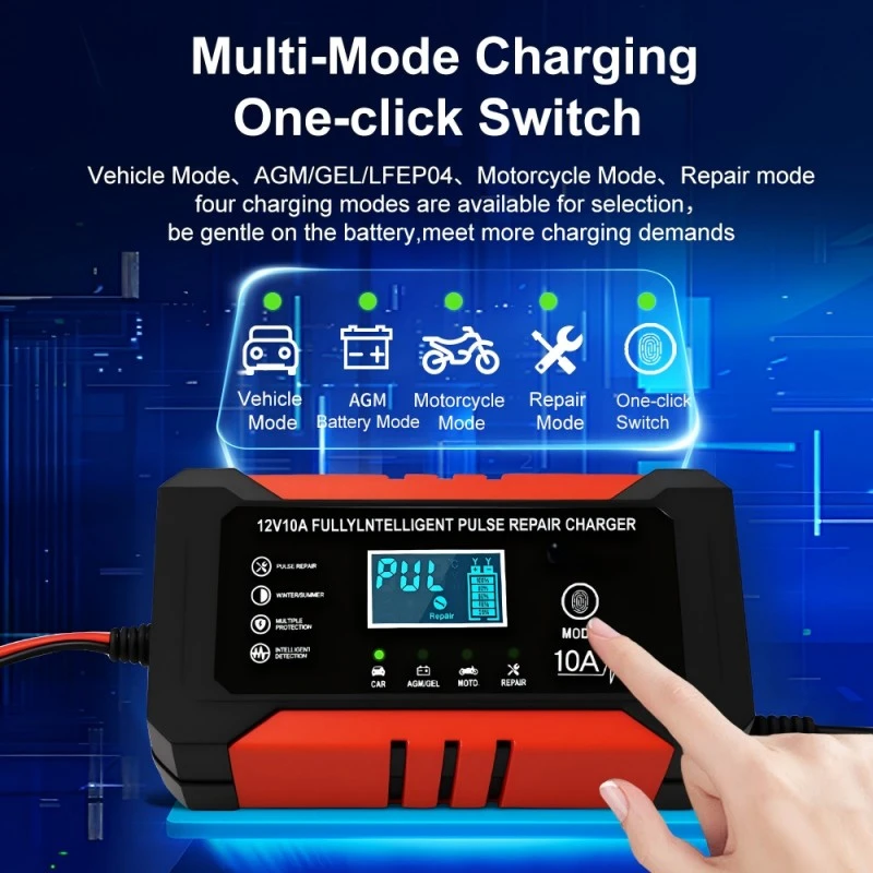 Utstyrt med presise tekniske spesifikasjoner, har denne intelligente batteriladeren et universelt inngangsspenningsområde på 110~230V AC (50/60Hz), som sikrer kompatibilitet med strømnett over hele verden. Den gir en stabil 12V DC-utgang med en 10A ladestrøm, og leverer konsistent kraft for raskt å lade batterier – i stand til å fullade et 100Ah blybatteri på omtrent 10 timer, betydelig raskere enn standard 5A-ladere. Med en energieffektivitet på over 95 %, minimerer den energisløsing, mens det kompakte aluminiumshuset (170×90×50 mm, 1,0 kg) sikrer portabilitet og holdbarhet.