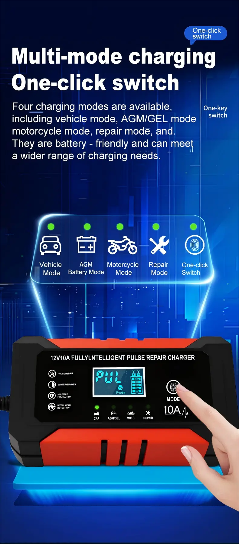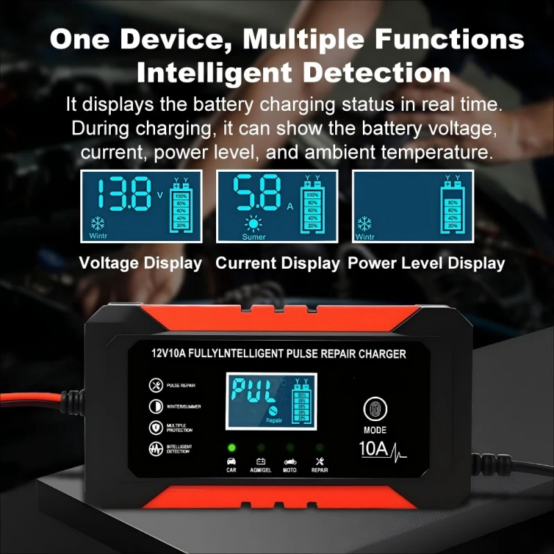STARWELL presenterer stolt sin 12V 10A multifunksjonelle intelligente batterilader, en høyytelses smart ladeløsning designet for å levere sikker, effektiv og allsidig lading for et bredt utvalg av 12V-batterier. Som en profesjonell intelligent batterilader, integrerer den avansert mikroprosessorteknologi for å overvåke og justere ladeprosessen i sanntid, noe som gjør den ideell for bil-, marine-, bobil- og hjemmebruk, egnet for både blysyre-, AGM-, Gel- og LiFePO4-batterier.