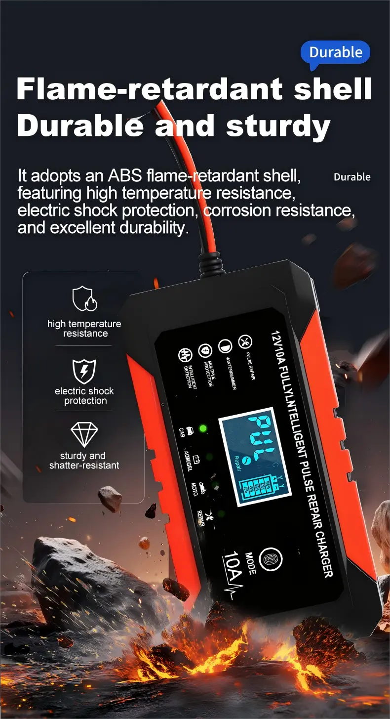 2. Intelligent sikkerhet og batteribeskyttelse: Innebygd beskyttelse mot overlading, kortslutninger, omvendt polaritet og overoppheting sikrer full sikkerhet. Den tar i bruk en 4-trinns smart ladeprosess (forhåndslading, konstant strøm, konstant spenning, flyter) og slår automatisk av strømmen når batteriet er fulladet, noe som forlenger batteriets levetid med opptil 30 % sammenlignet med tradisjonelle ladere.