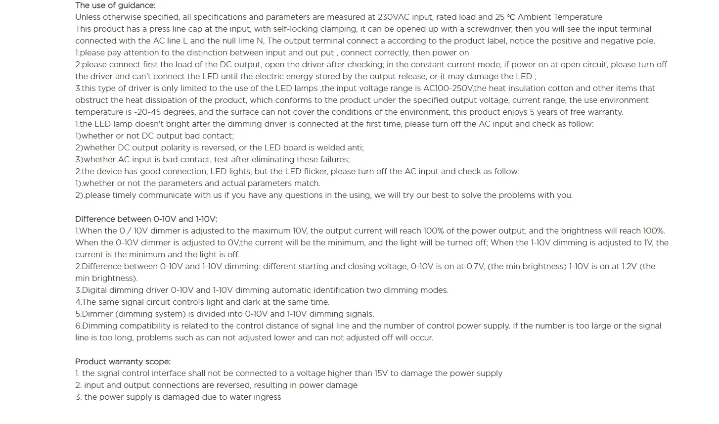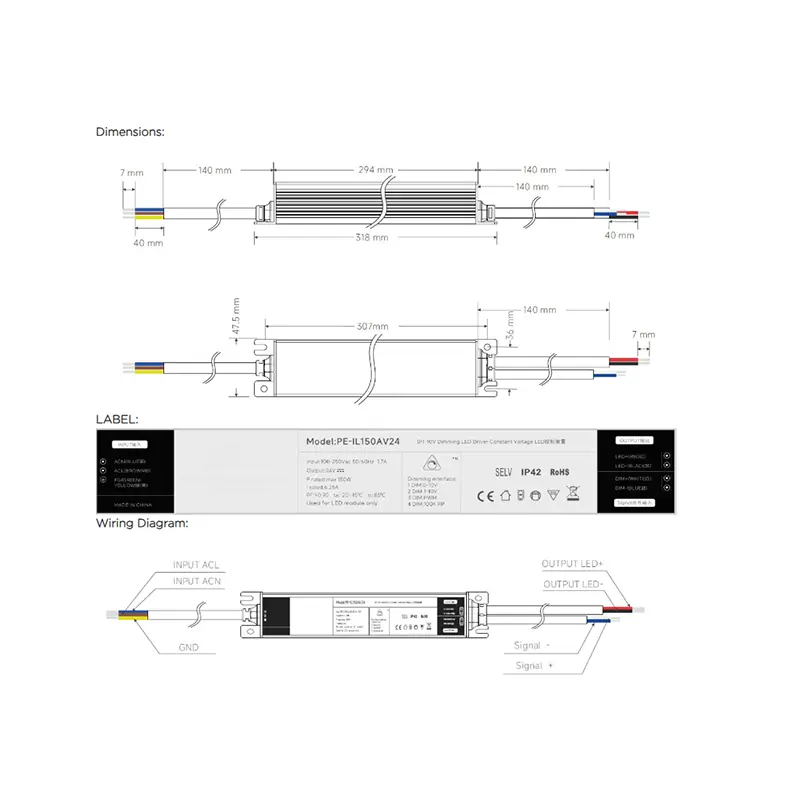 Bygget med robust aluminiumshus, har High-Performance Constant Votage Dimming Led Driver beskyttelse mot overspenning, overstrøm, kortslutning og overtemperatur, noe som sikrer pålitelig drift selv i tøffe miljøer. Kompakt, lett og enkel å installere, den passer innfelte, overflate- eller nedhengte LED-armaturer, fra butikkbelysning til kontorpanellys og hotelldownlights.