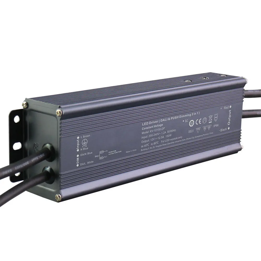 Starwell-fabrikkens holdbare 150W DALI Constant Voltage Dimming Led Drivers nøkkelinnovasjon er dens integrerte 2-i-1 dimmegrensesnitt, som støtter både DALI-2-protokollen for digitale kontrollsystemer og Push Dim for enkel, bryterbasert dimming. Denne doble kompatibiliteten gir uovertruffen installasjonsallsidighet.