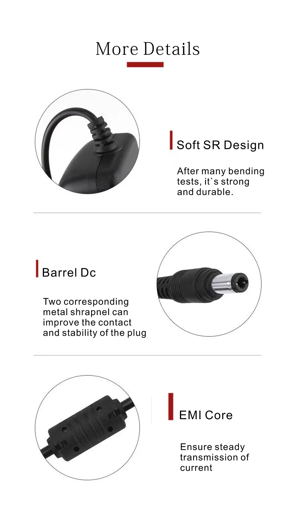 3. Connector Fit: Bekreft at pluggens størrelse (f.eks. 5,5 mm x 2,1 mm) og polariteten (ofte midtpositiv) samsvarer med enhetens DC-kontakt. En mismatch kan forårsake skade.
