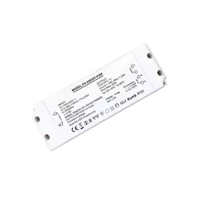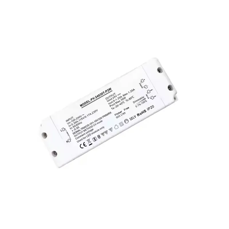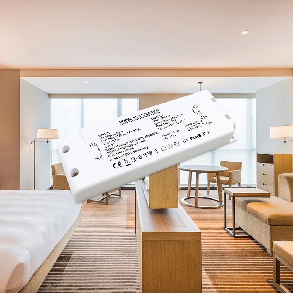 Høykvalitets 30 W konstantspenning triac dimming LED-driver tilbys av den kinesiske produsenten Starwell, som er en høyytelses, multifunksjons 30 W konstantspenning triac dimming LED-driver, spesielt utviklet for LED-belysningssystemer som krever presis lyskontroll. Den er kompatibel med både tradisjonell ledende fasekuttet (Triac) dimming og de avanserte 0-10V analog dimmeprotokollene, og fungerer som en 30W Triac 0-10V dimbar LED-driver, og gir brukerne installasjonsfleksibilitet og scenetilpasning.