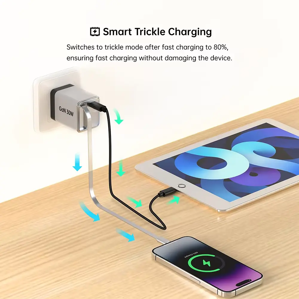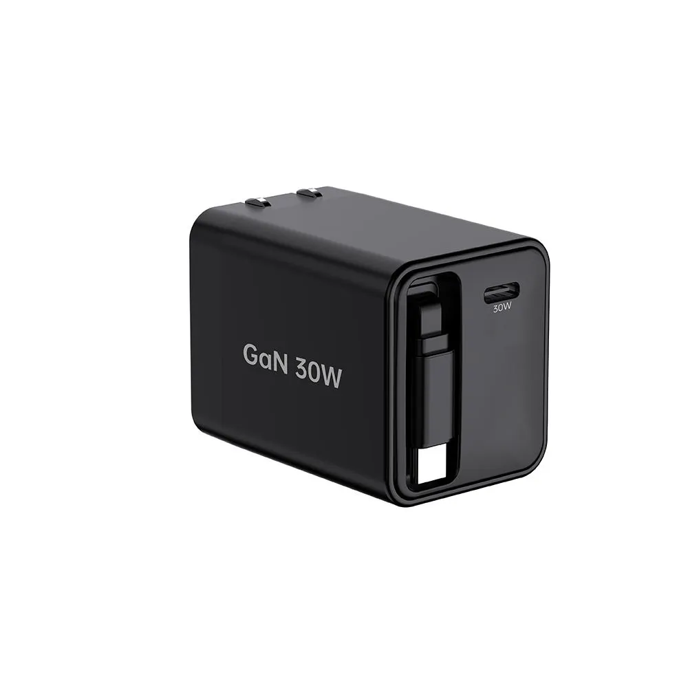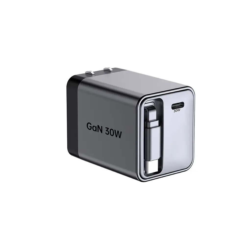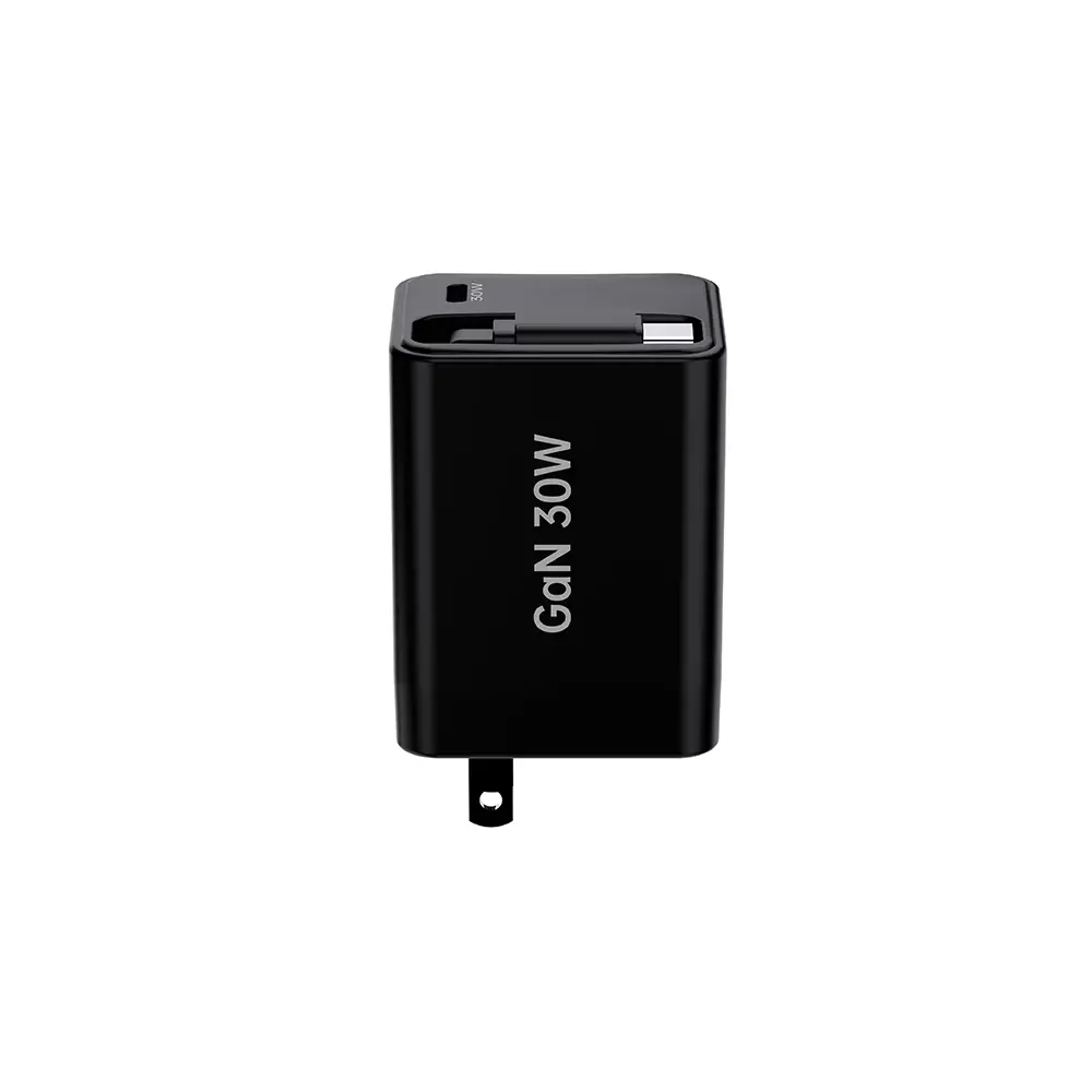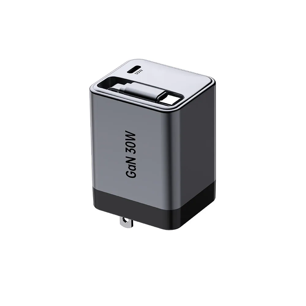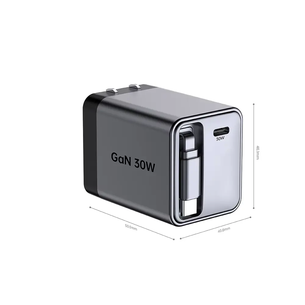 30 W hurtiglader med uttrekkbar Type C-kabels ultralette design i lommestørrelse gjør den lett å bære rundt. Det er det perfekte valget for hjem, kontor eller reise.