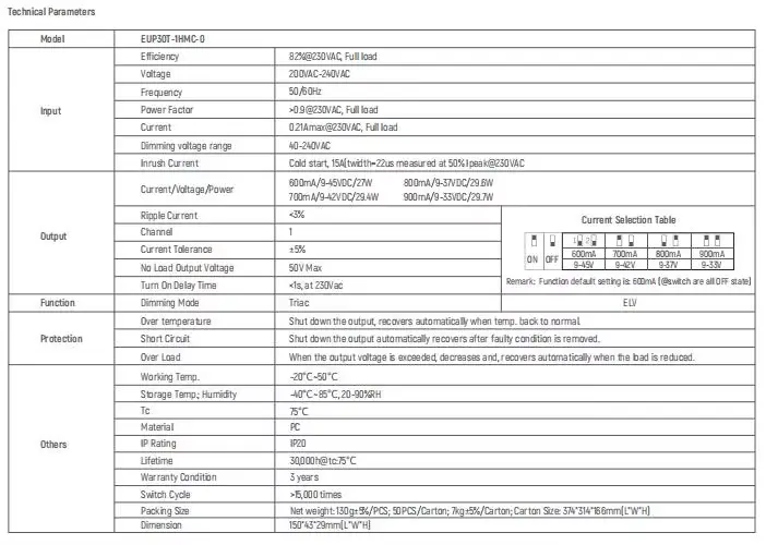Som en profesjonell produsent og leverandør av LED-driver i Kina, er vår 30W Triac dimming LED Driver Constant Current en strømkonverteringsenhet designet spesielt for middels til høy effekt LED-belysningssystemer. Den tar i bruk avansert konstantstrømkontrollteknologi for å sikre stabil drift av LED-perler ved nominell strøm, noe som effektivt forlenger lampens levetid og forbedrer lyseffektivitetens konsistens. LED-driveren med konstant strømdimming er egnet for belysningsscenarier med høy etterspørsel som kommersiell belysning, industriell belysning, utendørs flomlys og plantevekstlys.