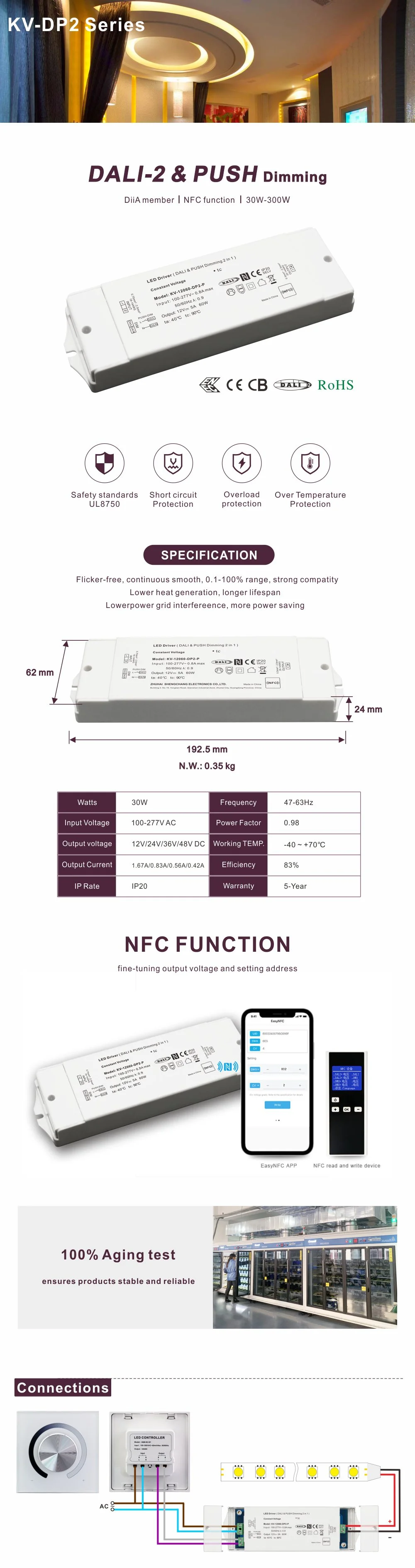 I tillegg til sin kraftige DALI-funksjonalitet, tilbyr denne driveren en enestående dimmeopplevelse. Den oppnår en silkemyk NFC Dimming Smooth No Flicker-effekt, som fullstendig eliminerer synlig flimring og jitter selv ved lave lysstyrkenivåer, beskytter effektivt synet og skaper et behagelig og sunt lysmiljø. Dens brede AC-inngangsspenningsområde (100-265V inngang)-design gjør det mulig å tilpasse seg spenningssvingninger i strømnett over hele verden, noe som sikrer stabil drift i forskjellige regioner.