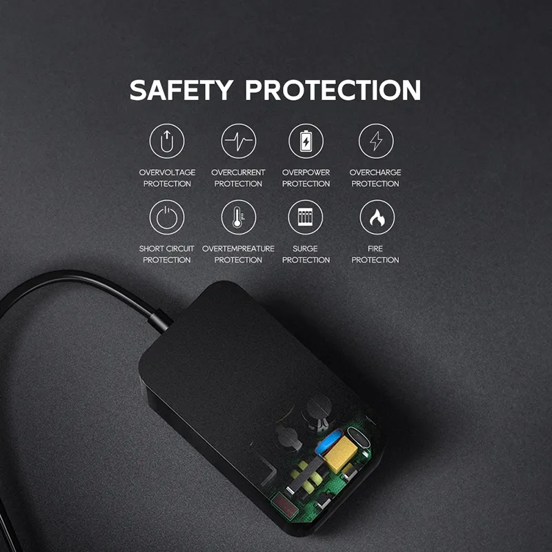 Overtemperaturbeskyttelse, overlading, overspenning, overstrøm, kortslutningsbeskyttelse |