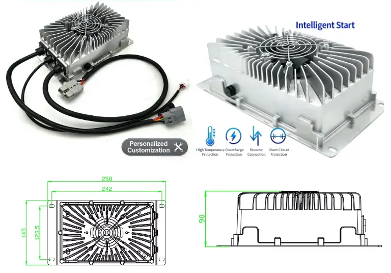 480W OBC 24V 15A-laderen er perfekt for elbiler, motorsykler, sightseeingkjøretøyer, gaffeltrucker, marinefartøyer og industrimaskiner. Dens holdbare design og brede batteristøtte gjør den til et foretrukket valg for produsenter, leverandører og fabrikker som ønsker å oppgradere EV-ladesystemer med pålitelig ytelse.