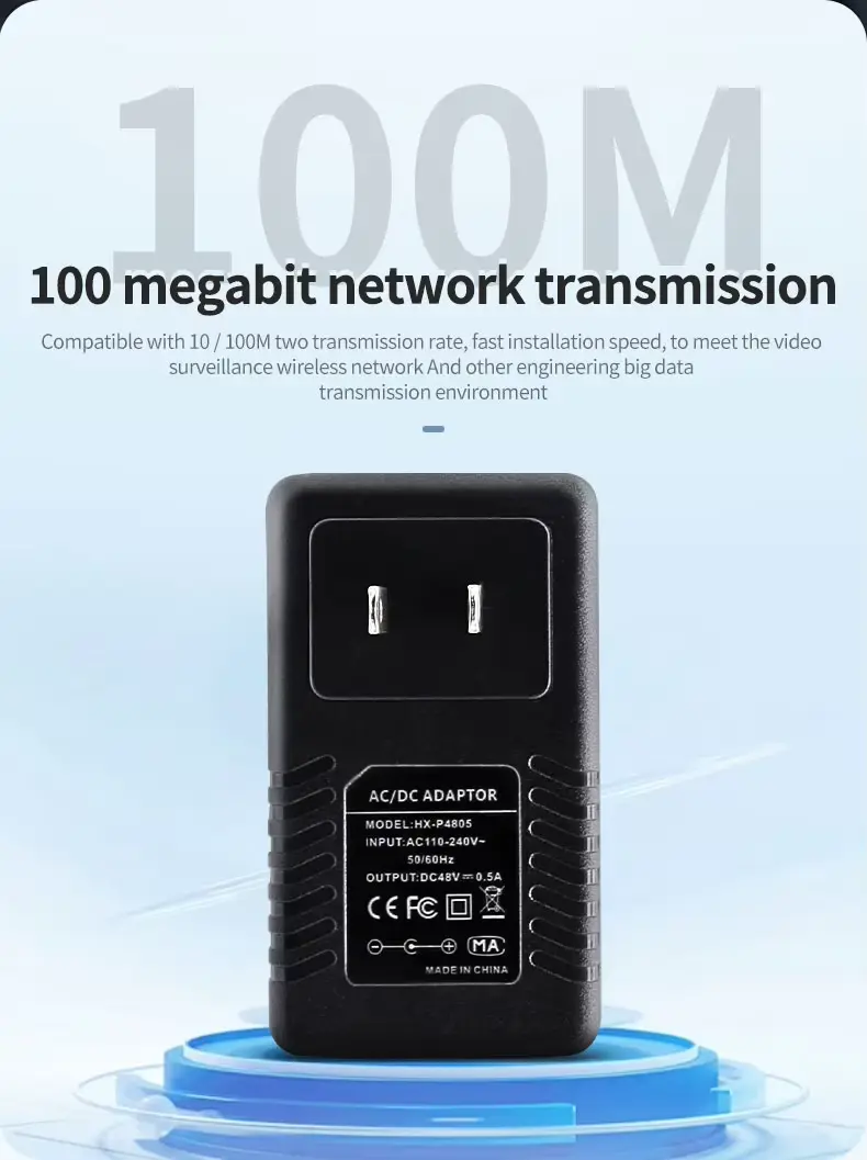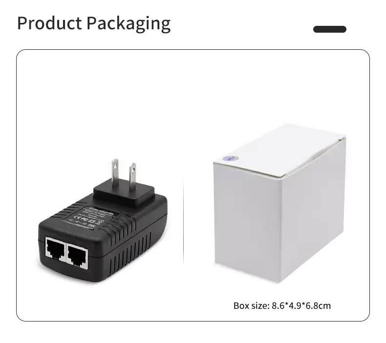 En høykvalitets 48V 0,5A veggplugg PoE Injector Ethernet-adapter tilbys av den kinesiske produsenten Starwell. Denne strømforsyningsenheten leverer en utgangseffekt på 24W (48V/0,5A), noe som gjør den spesielt egnet for utendørs trådløse enheter – slik som de fra merker som Ubiquiti og MikroTik – så vel som langdistanse IP-kameraer og nettverksbroer. Produktet har flere beskyttelsesmekanismer mot overspenning, overstrøm og kortslutninger; den fungerer innenfor et temperaturområde på -10°C til 60°C og leveres med 5 års garanti.