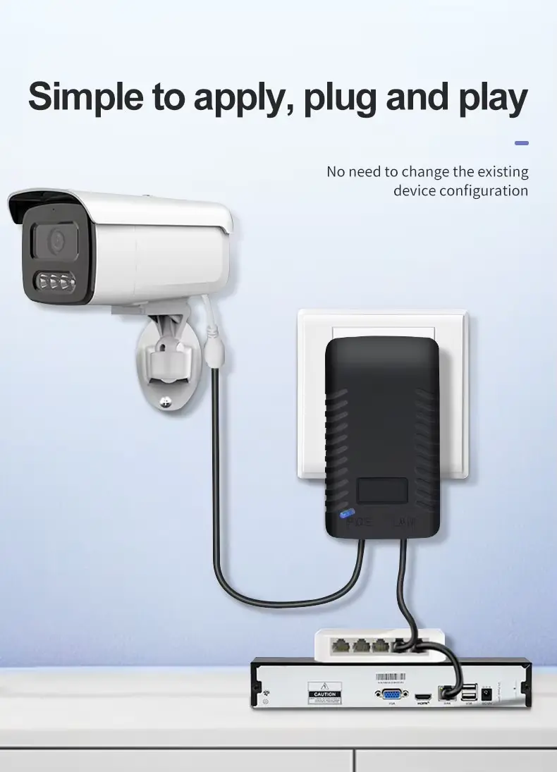 IP-kameraer med lang rekkevidde: Perfekt for å drive 48V PTZ (Pan-Tilt-Zoom) eller kulekameraer installert på avsidesliggende steder.