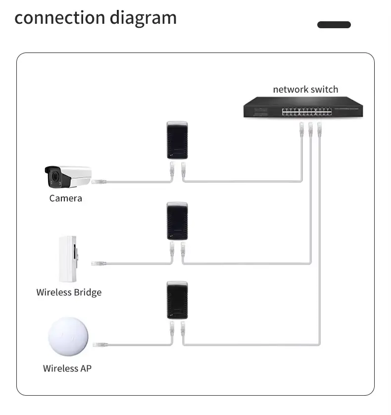 Denne injektoren er spesielt utviklet for nettverksenheter som krever 48V DC-inngang via Ethernet. Den er allment kompatibel med industristandardutstyr, inkludert: