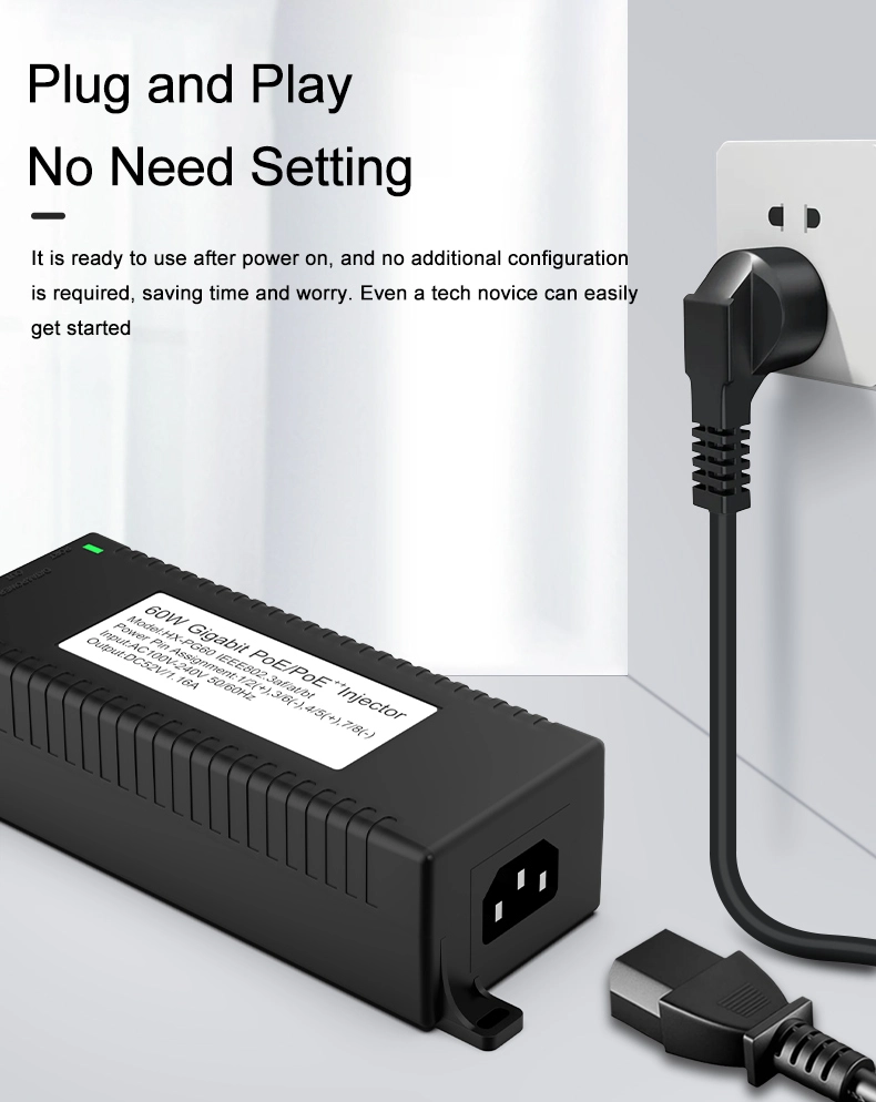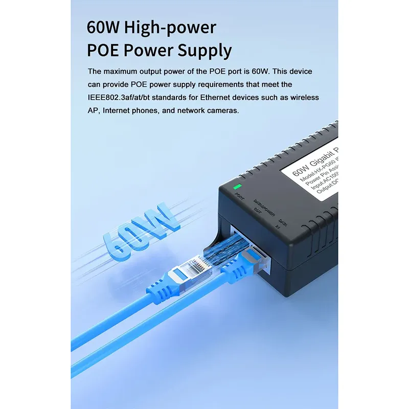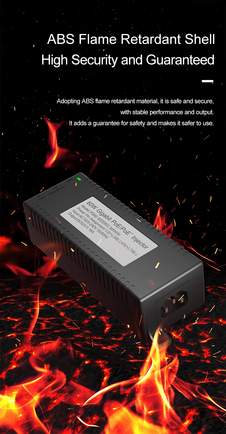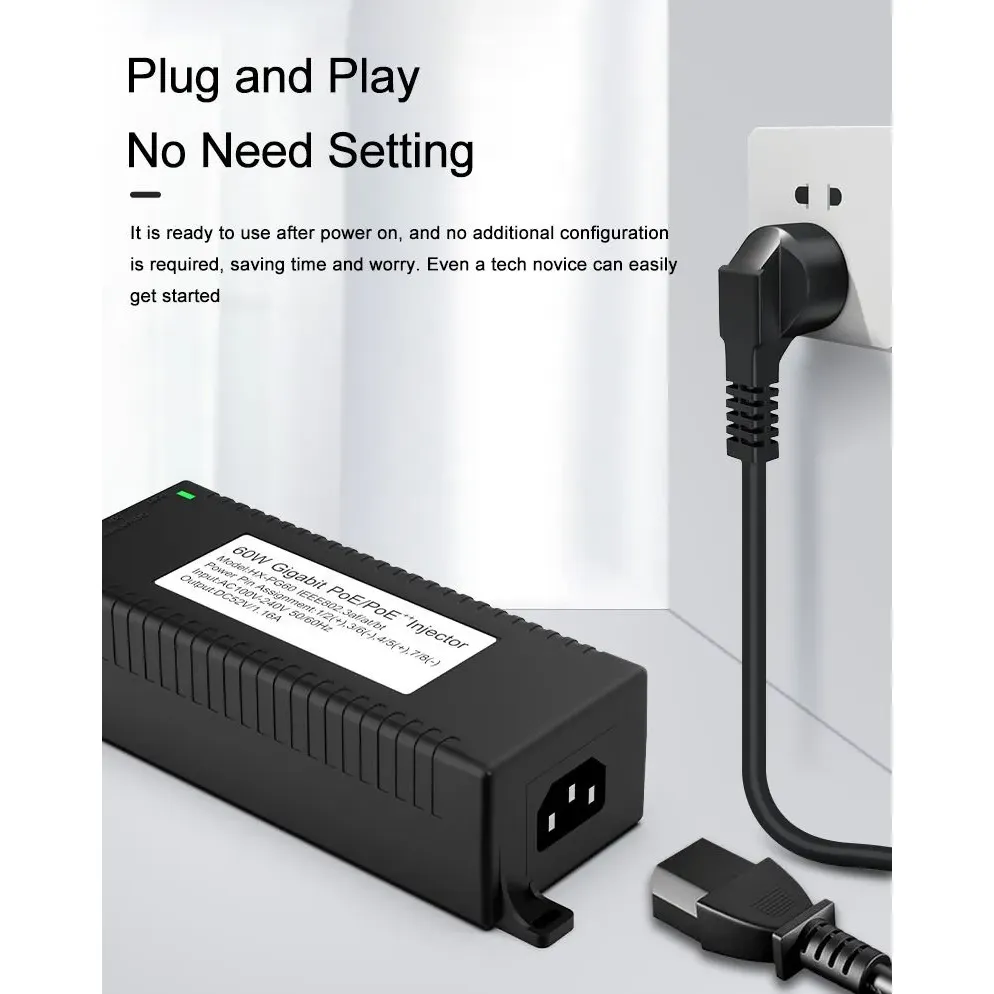 Sikkerhetsovervåking: Gigabit 60 W desktop POE-injektor for IP-kamerasikkerhet og nettverksenhet gir stabil strøm til IP-kameraer og PTZ-kameraer.