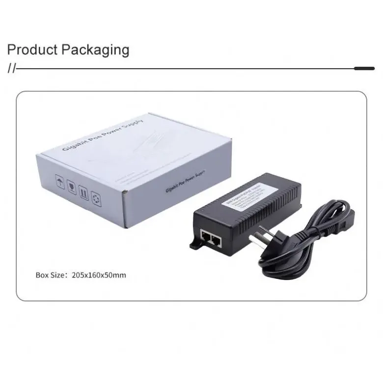 Kjøp kvalitets 60W stasjonær POE-injektor med IEEE802.3AF/AT/BT fra Starwell, en profesjonell PoE-injektorprodusent i Kina. Den følger strengt IEEE 802.3af/at/bt internasjonale standarder og er designet for å overføre strøm og data samtidig gjennom Ethernet-kabler for nettverksenheter. Den støtter opptil 60 W strømuttak og kan perfekt romme og drive høyeffekt PoE-aktiverte enheter som PTZ dome-kameraer, HD-kameraer, trådløse AP-er og videotelefoner. Injektoren har en kompakt skrivebordsdesign og kommer med en direkte strømplugg for plug-and-play-komfort uten behov for ekstra konfigurasjon. Den er utstyrt med en intelligent kretsbeskyttelsesmekanisme som effektivt forhindrer overstrøm, overspenning og kortslutninger, og sikrer en stabil og sikker strømforsyning for terminalenheter i ulike installasjonsmiljøer.