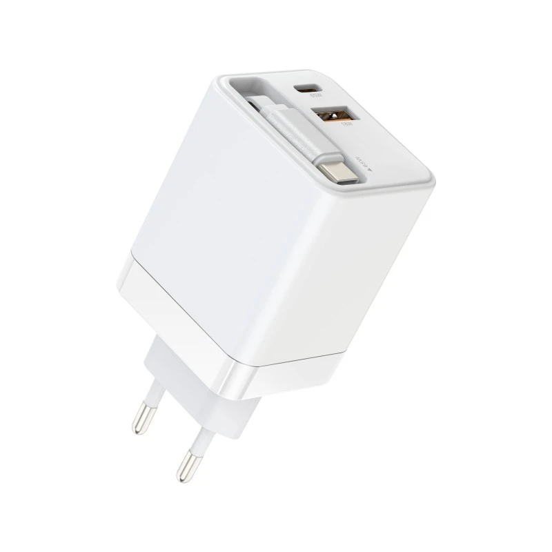 Den enkle USB-C-porten gir maksimal kraft for rask lading av den bærbare datamaskinen, smarttelefonen, nettbrettet og andre viktige enheter. Den allsidige, sammenleggbare amerikanske pluggen sikrer en slank, lommevennlig profil, mens utskiftbare plugger (USA, EU, UK) er tilgjengelig for å møte ulike regionale standarder, alle med full sertifisering for sikker og pålitelig bruk over hele verden.