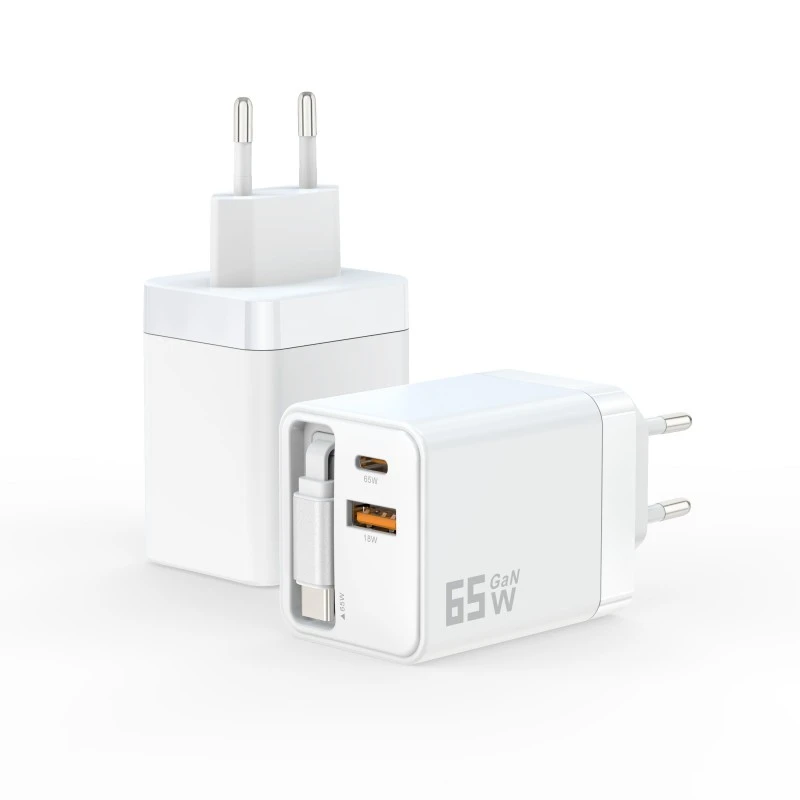 Høyhastighetslading på 65 W: Driver bærbare datamaskiner og hurtigladere telefoner.