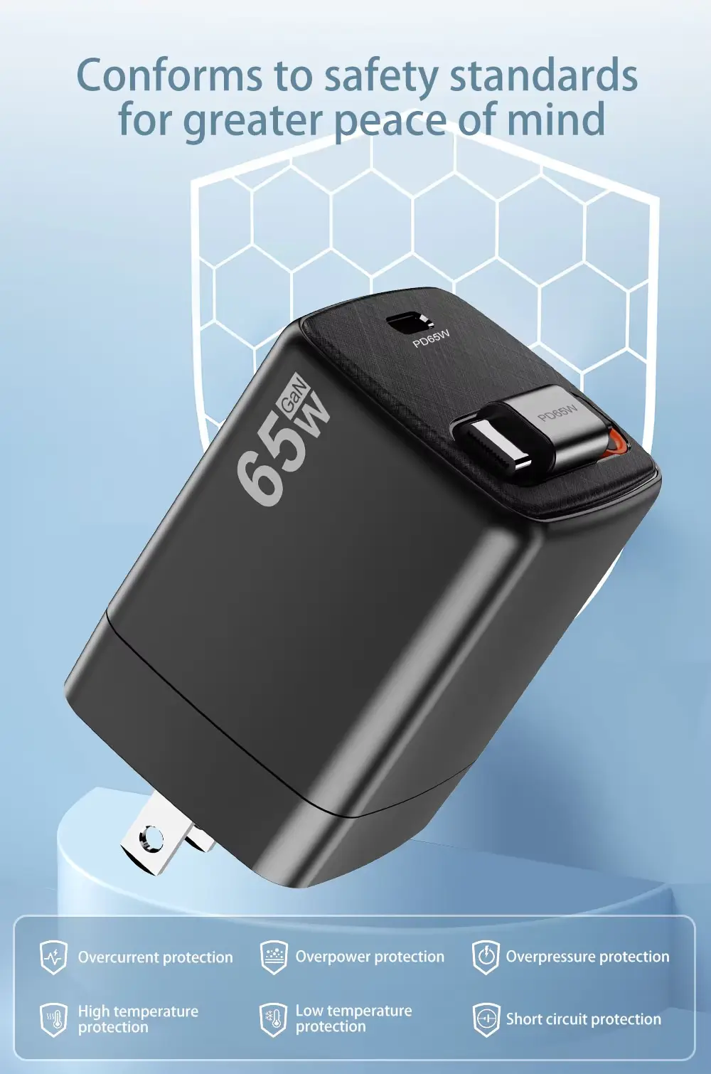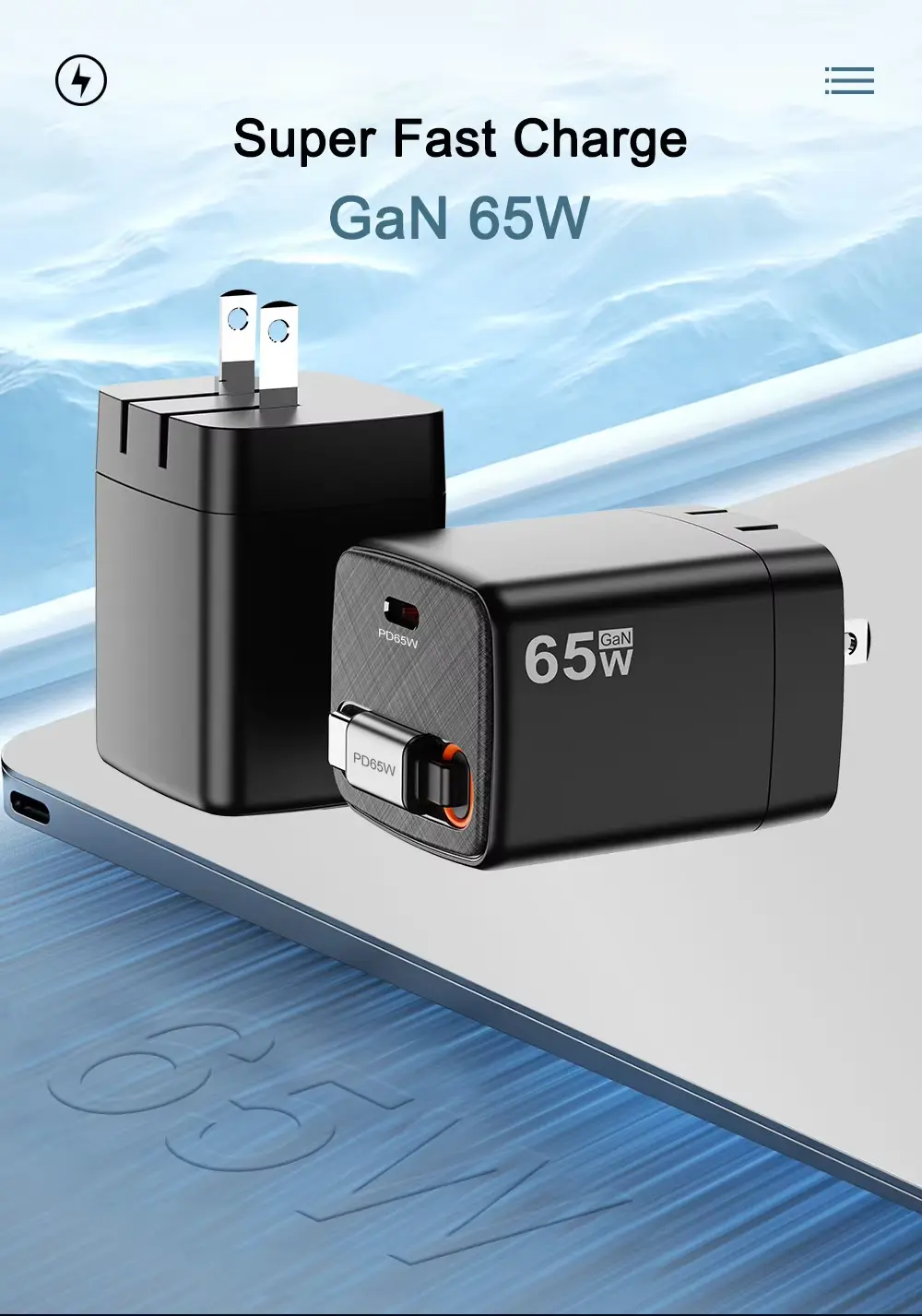 Tilpassbar logo Mini 65W PD Gan USB C-lader Sammenleggbar US-plugg USB-reiseadapter Telefonlader |