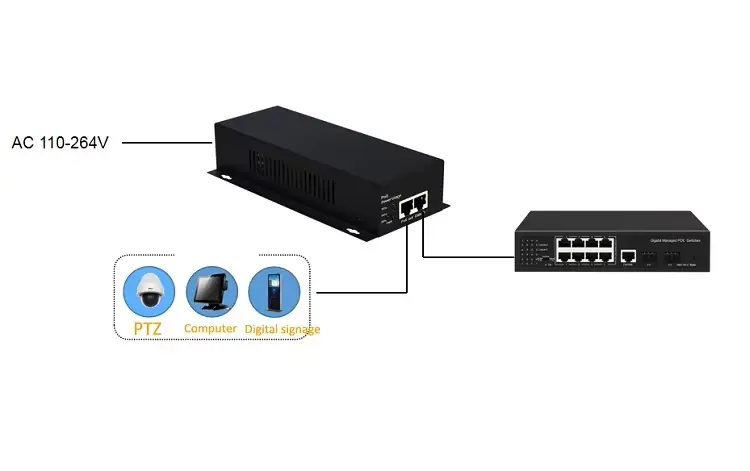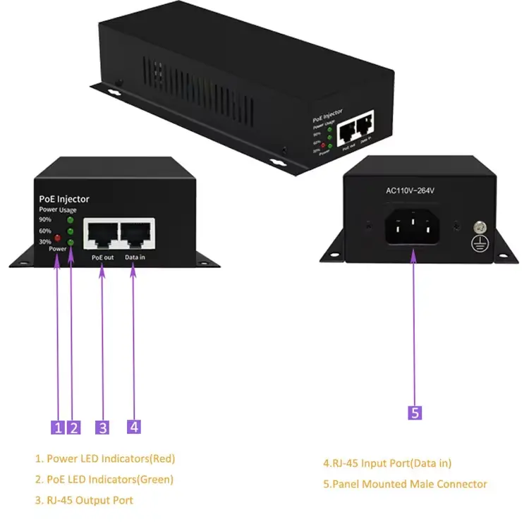 Som en profesjonell strømforsyningsprodusent i Kina har Starwell introdusert en 90W Metal Case IEEE802.3bt Gigabit PoE Injector som fullt ut samsvarer med IEEE 802.3bt-standarden. Den støtter en 52V-utgang, leverer en maksimal effekt på 90W per port, og er bakoverkompatibel med 802.3af/at-standardene.