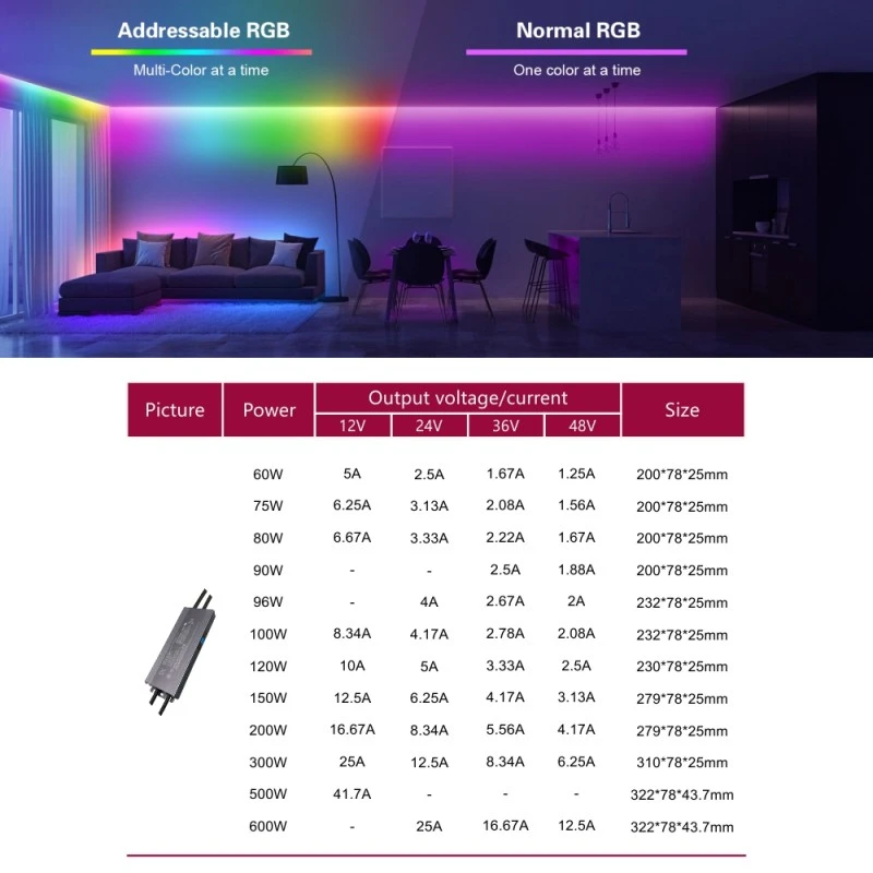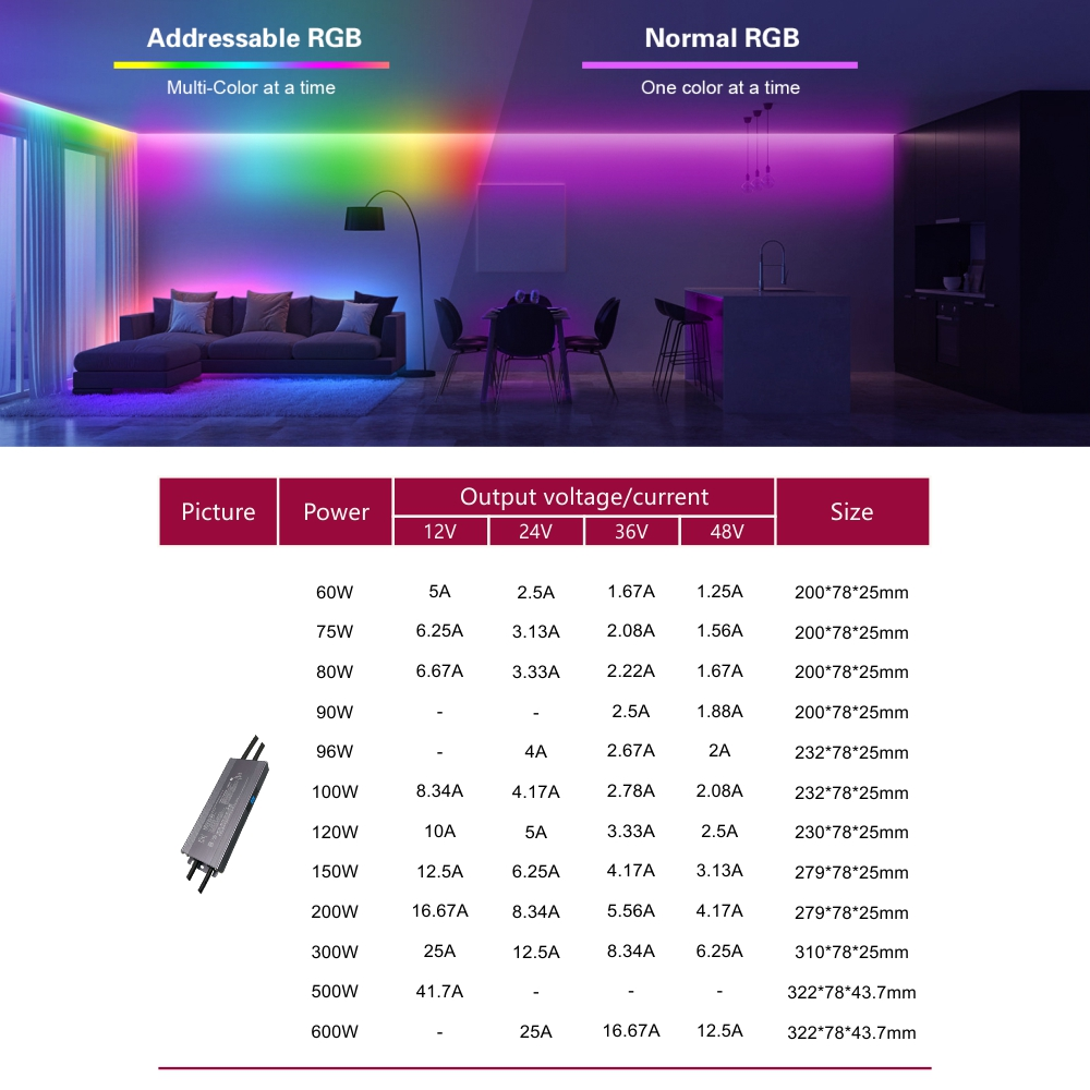 Dens kjernedesign er rettet mot å møte de mest krevende installasjons- og applikasjonskravene. Strømforsyningen bruker en utgangsmodus for konstant spenning, og gir en stabil likespenning på 12V eller 24V, og er optimert for å drive ulike LED Strip-lys og moduler. Imponerende er at mens den leverer en kraftig 200W drivkraft, oppnår den en ultrakompakt størrelse, noe som sparer mye plass i koblingsbokser eller smale tak. Produktserien er fleksibel, og tilbyr forskjellige kanalversjoner fra 1 til 5 kanaler: enkanalsversjonen er for ren dimming, tokanalsversjonen kontrollerer uavhengig kjølig og varmhvitt lys for å oppnå full-range CCT-justering, og femkanalsversjonen er en kraftig DALI konstantspenning RGB CCT dimbar 200W LED-driver, som kontrollerer generert og kjølig RGB-farge, og kjølig lys samtidig. farger og atmosfærer.