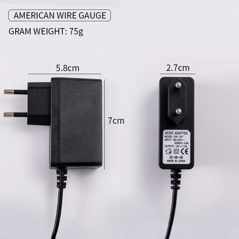 12V 1,5A veggmontert byttestrømadapter - detaljert beskrivelse
