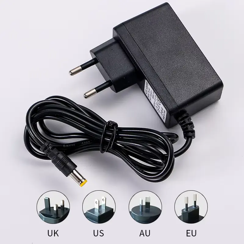 Den veggmonterte formfaktoren sparer plass og eliminerer kabelrot ved å koble den direkte til en stikkontakt. En standard DC-utgangskabel med en felles kontakt (f.eks. 5,5 mm x 2,1 mm rørplugg, senterpositiv er typisk) er inkludert for enkel tilkobling.