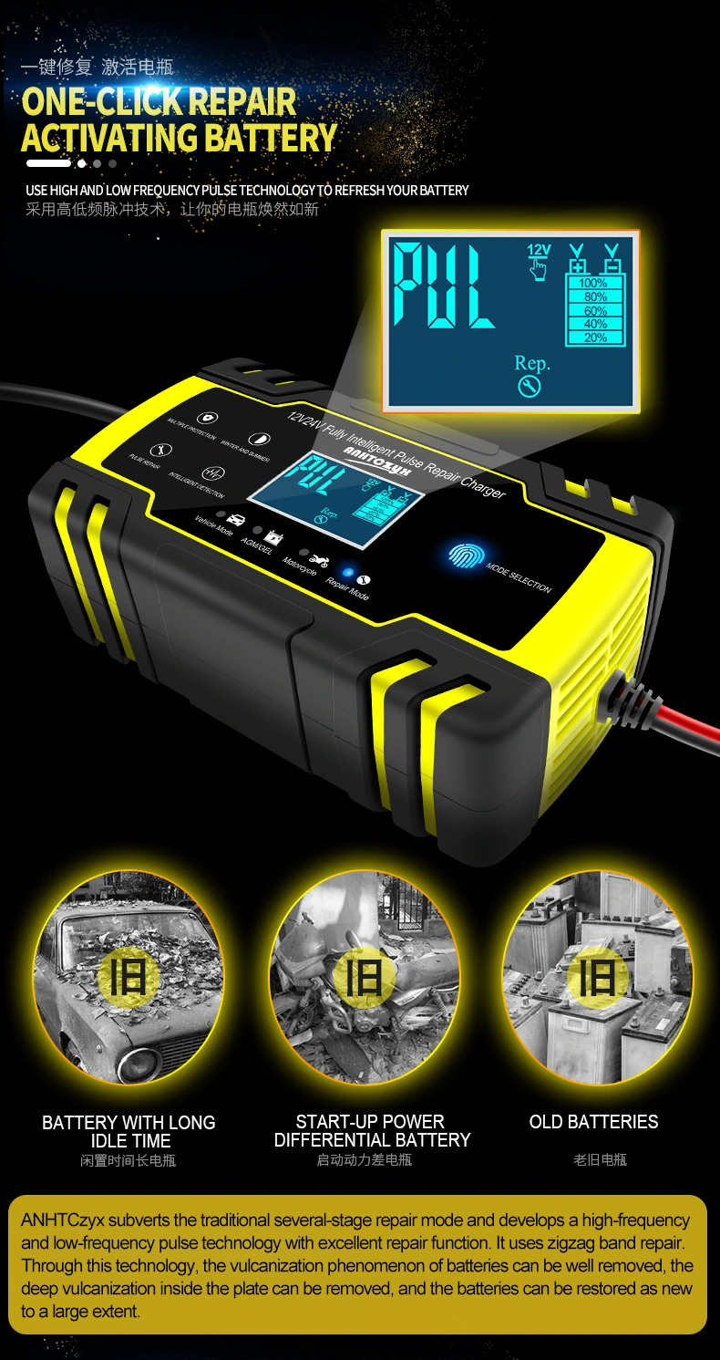 · Pulsreparasjonsfunksjon: Bruker høyfrekvent pulsteknologi for å redusere blysulfatkrystallisering (sulfatering), og hjelper til med å gjenopprette tapt kapasitet i gamle eller underladede batterier.