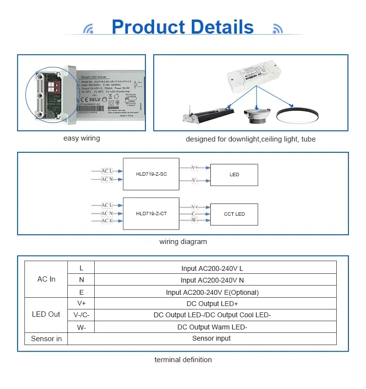 En Tuya Zigbee Wireless Control 350mA CCT dimbar LED-driver er en konstantstrøm LED-strømdriver designet for å kontrollere avstembar hvit LED-belysning. Den integrerer Zigbee 3.0 trådløs protokoll, slik at brukere kan justere lysstyrke og fargetemperatur gjennom en smarttelefon, nettbrett eller stemmeassistent.
