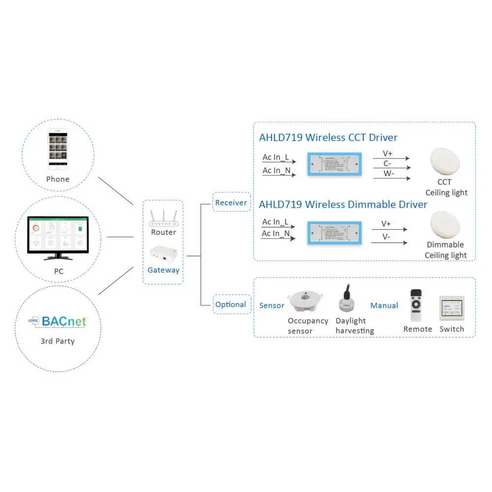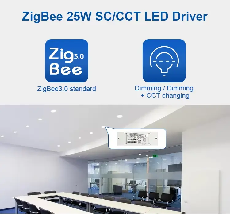 Driveren opererer innenfor et Zigbee-nettverk og kobles til en Zigbee-gateway for å aktivere smarte lysfunksjoner som planlegging, scenekontroll, gruppekontroll og automatisering. Denne typen LED-drivere brukes ofte i smarthusbelysningssystemer, kommersielle lysinstallasjoner og intelligente bygningskontrollmiljøer.