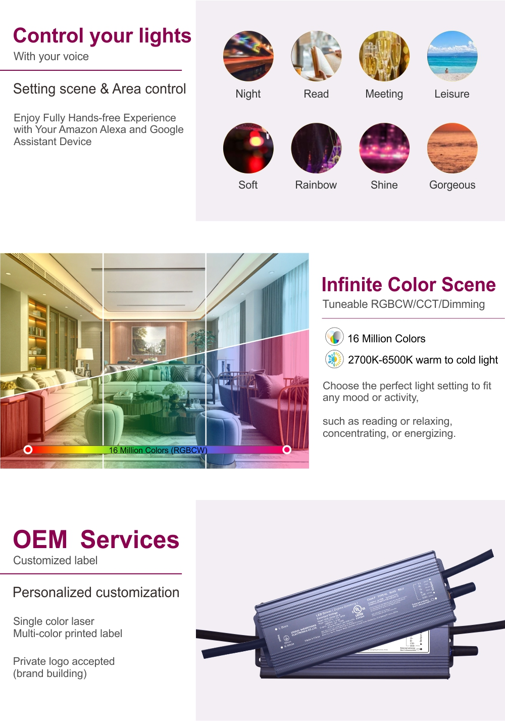 Visuell komfort: Ultra-dyp dimming beskytter øyekomfort om natten og gir livlig lysstyrke for fester, samtidig som den forlenger levetiden til LED-armaturene dine.