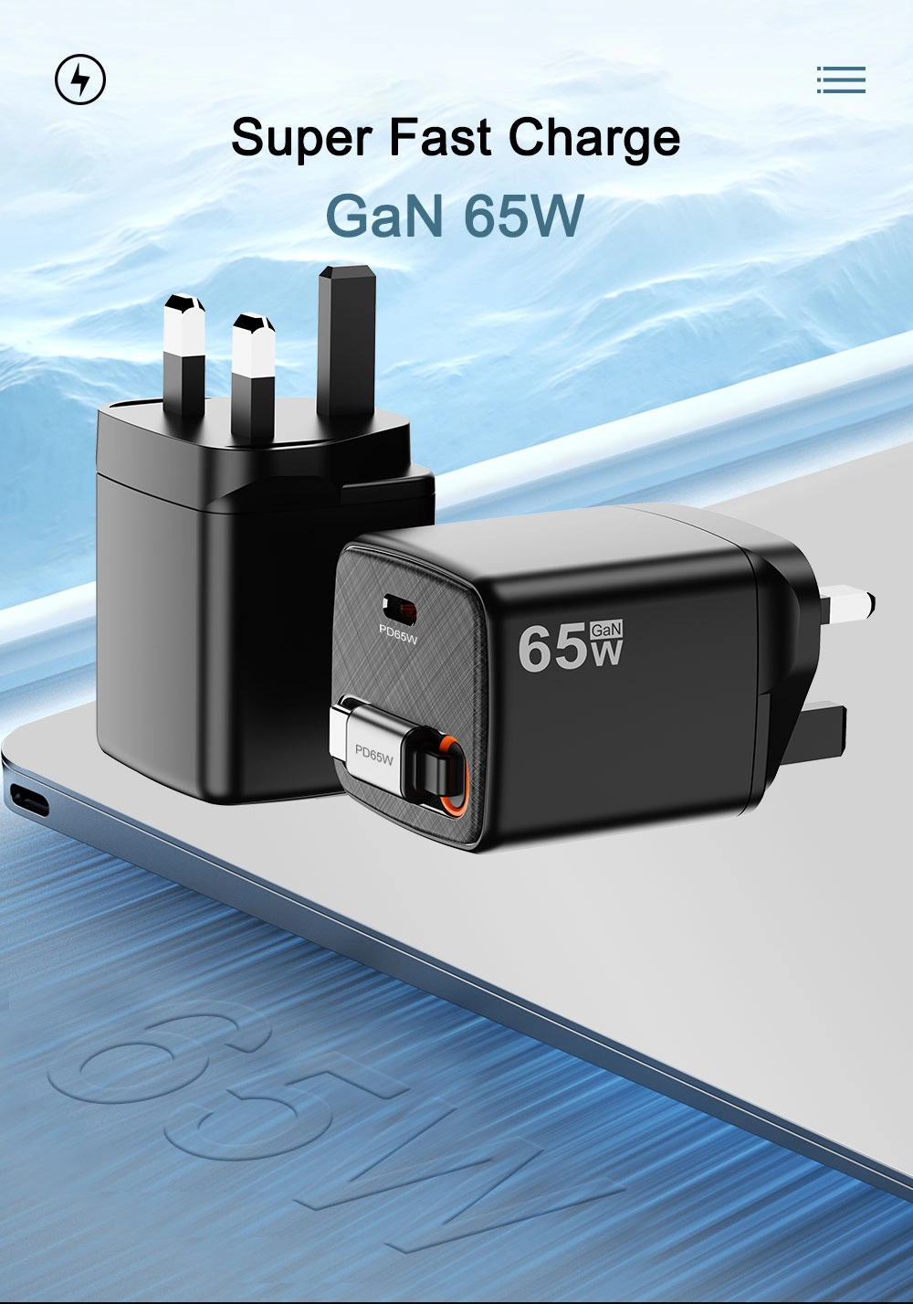 UK plugg type 65w hurtiglader |